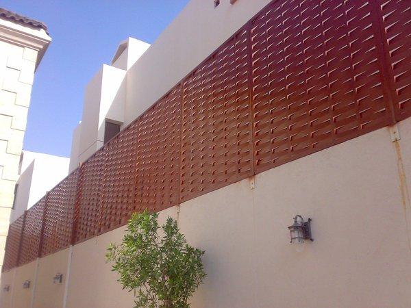 وهذا النوع من السواتر يتميز بشكلة ومنظرة الجميل فهو اجمل انواع السواتر الحديدية لأنه مصنوع من الحديد مع فواصل من اللكسان ذات الشكل الجميل.